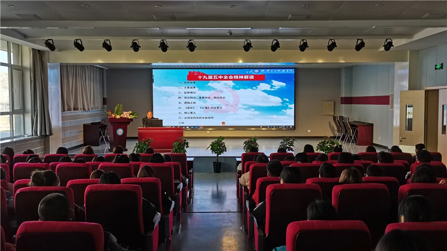 党委副书记、校长任晖回顾了我国全面建成小康社会取得的决定性成就,分析了新发展阶段面临的新形势,阐释了“十四五”规划和2035年远景目标的主要内容,对全会提出的进入新发展阶段、贯彻新发展理念、构建新发展格局、推动高质量发展、坚持党的全面领导等一系列重大部署作了系统解读;她鼓励青年学生要刻苦学习,勇于担当,做民族复兴大任的接班人。