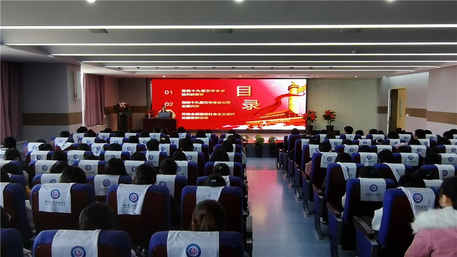 根据党中央统一部署和省委、省委教工委的工作要求,11月18日至30日,甘肃卫生职业学院党委安排学校领导班子成员在全校范围内开展党的十九届五中全会精神集中学习宣讲活动。由马克思主义学院会同学校党委办公室、宣传部以《形势与政策》课程为载体进行教学安排,历时12天共14场次。