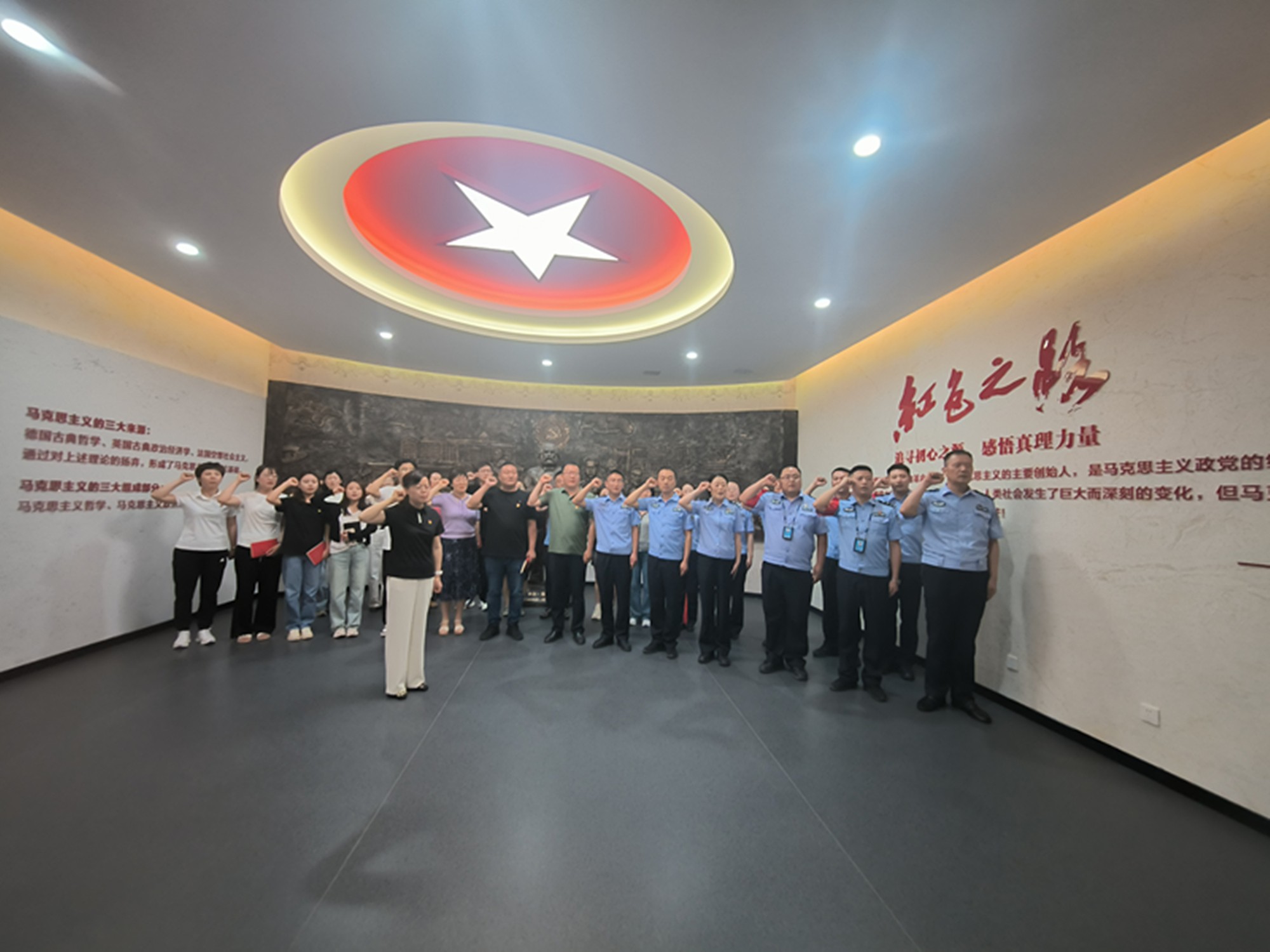 活动开始,在党支部书记赵晓玲同志的带领下,两个支部全体党员面对鲜红的党旗,右拳高擎,重温入党誓词,用铿锵的语调向党承诺,不忘初心跟党走,牢记使命勇担当,以实际行动践行党的宗旨。随后,在讲解员的带领下,与会全体党员参观学习了我校红色文化教育实践教学基地,一起重温红色革命记忆,深刻感悟革命先辈的奋斗历程。参观结束后,与会党员在503党员活动室开展座谈。