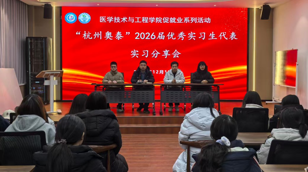 为助力2027届学子明确就业方向、深入了解行业企业需求,12月19日,医学技术与工程学院成功举办了促就业系列活动之杭州奥泰生物技术有限公司2026届优秀实习生代表分享会。学院实习就业工作办公室老师与120余名2027届在校生共同参与了此次活动。