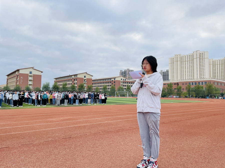 迎着第一缕晨光,升旗仪式正式开始。国旗班护卫队队员护送着鲜艳的五星红旗,他们目光如炬,队列整齐,步履铿锵,在庄严的国歌声中,五星红旗冉冉升起,在场的每一名师生深怀对祖国无限的热爱和崇高的敬意行注目礼、高声唱响国歌。今天也是我国第24届“全国推广普通话宣传周”的第一天,医学技术学院2020级口腔工艺技术五年制3班学生樊奇英作了《推广普通话,从我们做起》的主题演讲,她首先向新同学的到来表示欢迎和问候,并从使用方言交流带来的不便和书写错别字带来的问题的角度,阐述了说普通话和写规范字的重要性,号召全体同学携起手来,互相监督,互相鼓励,让清脆悦耳的普通话响彻校园的每一个角落。升旗仪式最后,校团委书记衡冰发表主题讲话,她分别介绍了推广普通话宣传周的历史背景、活动要求和近期安排,着重强调了使用普通话和规范字的重要意义,并传授了数条学好普通话的要领,并要求全体同学要扬民族文化,树民族精神,齐心协力说好普通话,写好规范字。
