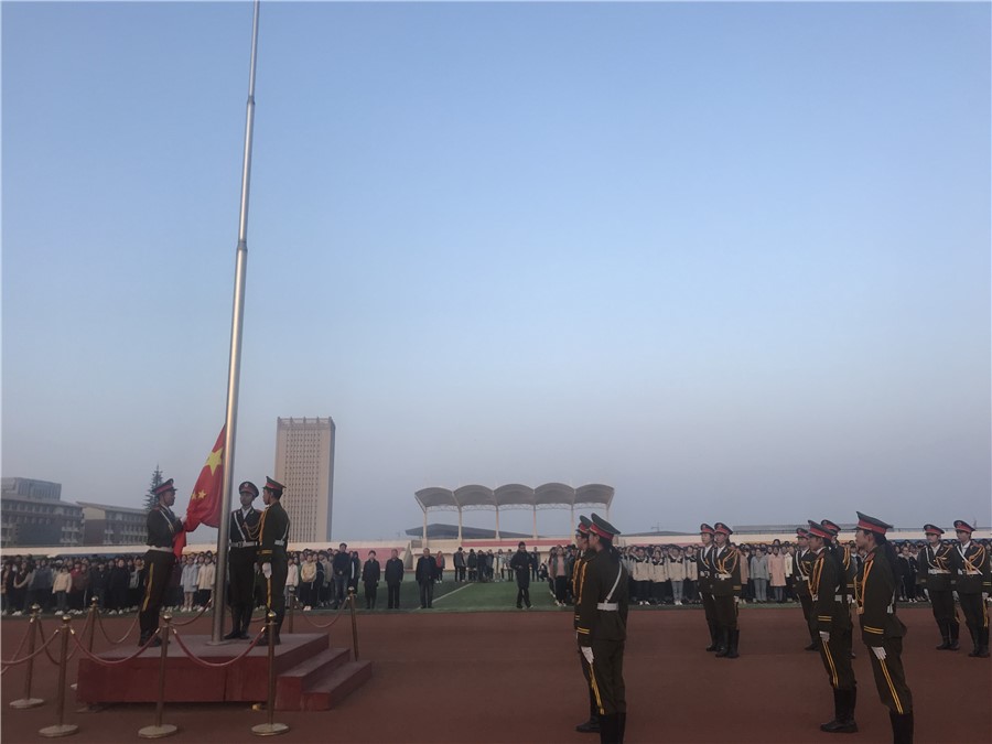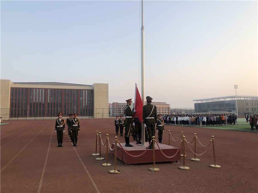 3月18日清晨,校团委组织4000余名师生在操场举行了本学期第一次升旗仪式。校领导康逢民出席升旗仪式。