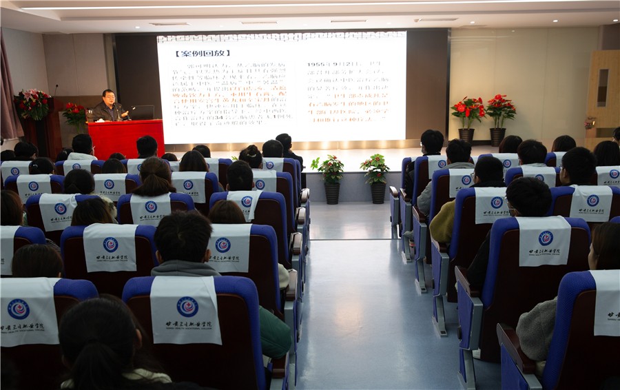 12月7日晚7:00,中医药学院邀请甘肃中医药大学中医临床学院院长赵鲲鹏教授,在护理系五楼报告厅为中医学、针灸推拿专业在校生举办了题为《传承精华、守正创新,做优秀的中医药人才》的专题讲座。讲座由中医药学院院长李钦主持,学院230名师生代表在现场聆听讲座,学院其余学生在本班教室通过“腾讯课堂”线上同步收看。