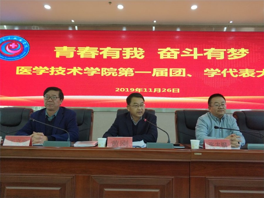 根据《中国共产主义青年团章程》的规定和学校党委的安排医学技术学院于11月26日下午2:30在学校办公楼8楼会议室召开了第一届团员、学生会代表大会。副校长黄刚、医学技术学院院长张志钢、党总支副书记郭艳玲等老师以及255名团学代表参加了会议。会议由党总支书记王义安主持。