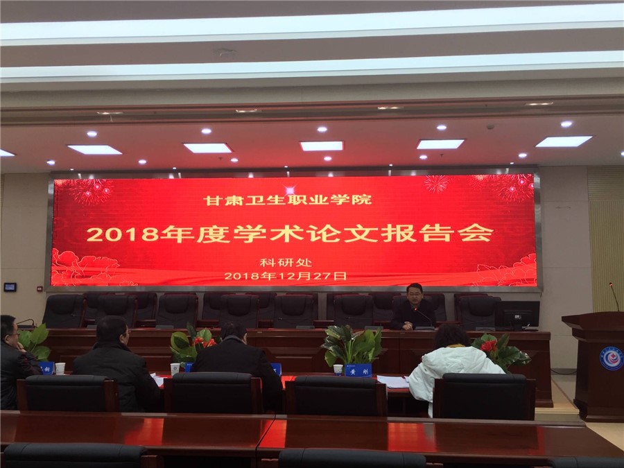 为加强学术研究,活跃学术氛围,2018年12月25、27日下午,科研处在行政楼八楼会议室召开2018年度甘肃卫生职业学院学术论文报告会,黄刚副校长、12位评审专家、全体专兼职教师参加了会议,会议由科研处王一强主持。