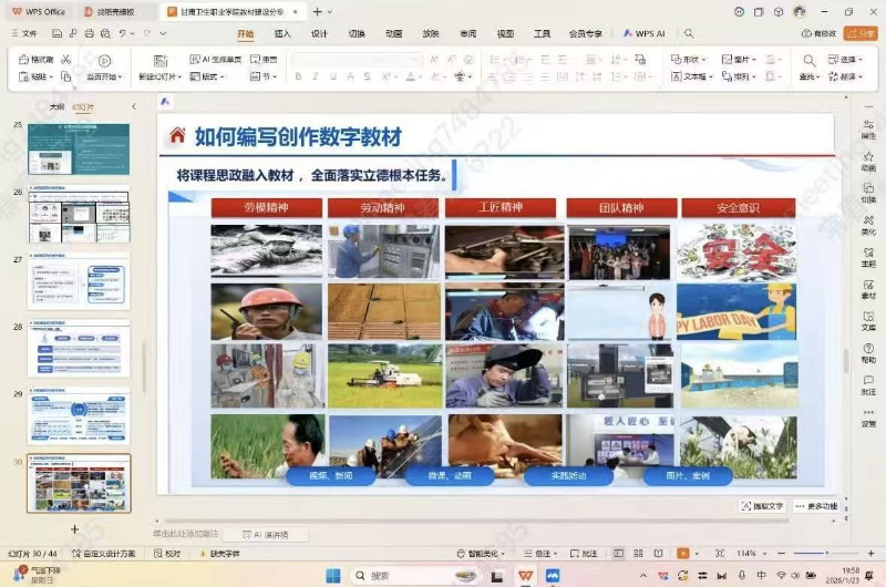 与会教师就课程选题、版权处理、出版社合作等实际问题展开讨论,明确优先开发本学院专业核心技能课程和地区特色课程。下一步,教师可通过数字教材APP进行调研,各教研室组织课程团队内部研讨形成初步建设方案,并与平台方进一步对接建设细节。此次研讨会明确了建设方向与路径,为学院后续数字教材开发工作奠定了坚实基础。