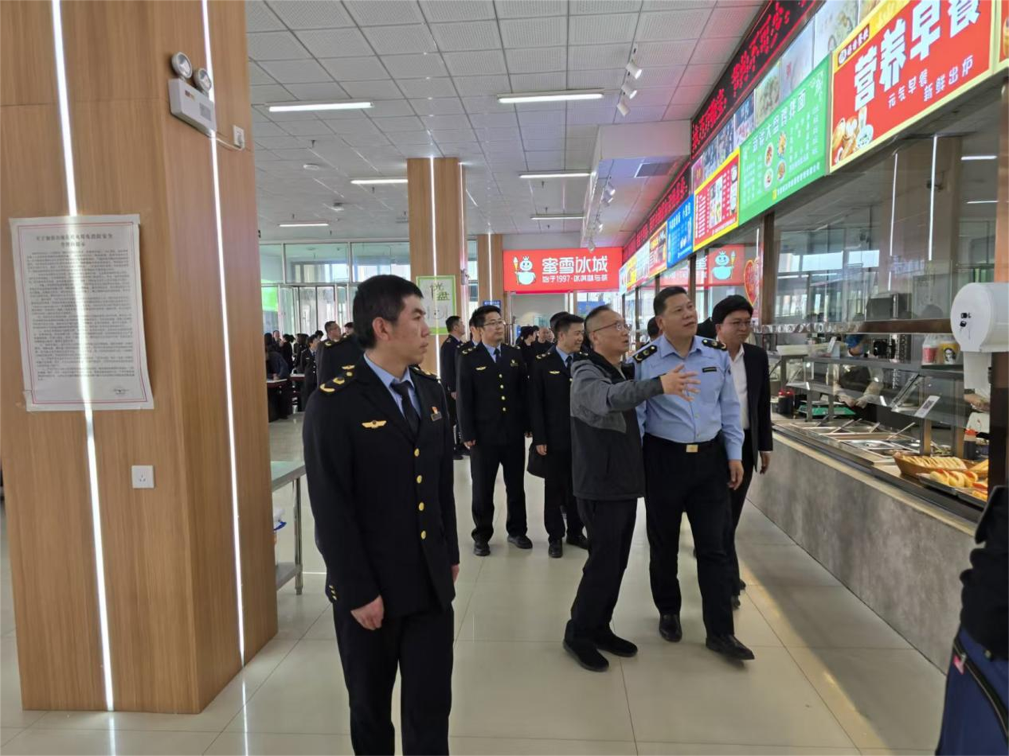 讲座结束后,省市场监管局领导及相关工作人员在学校领导的陪同下,前往学校食堂进行实地检查。
