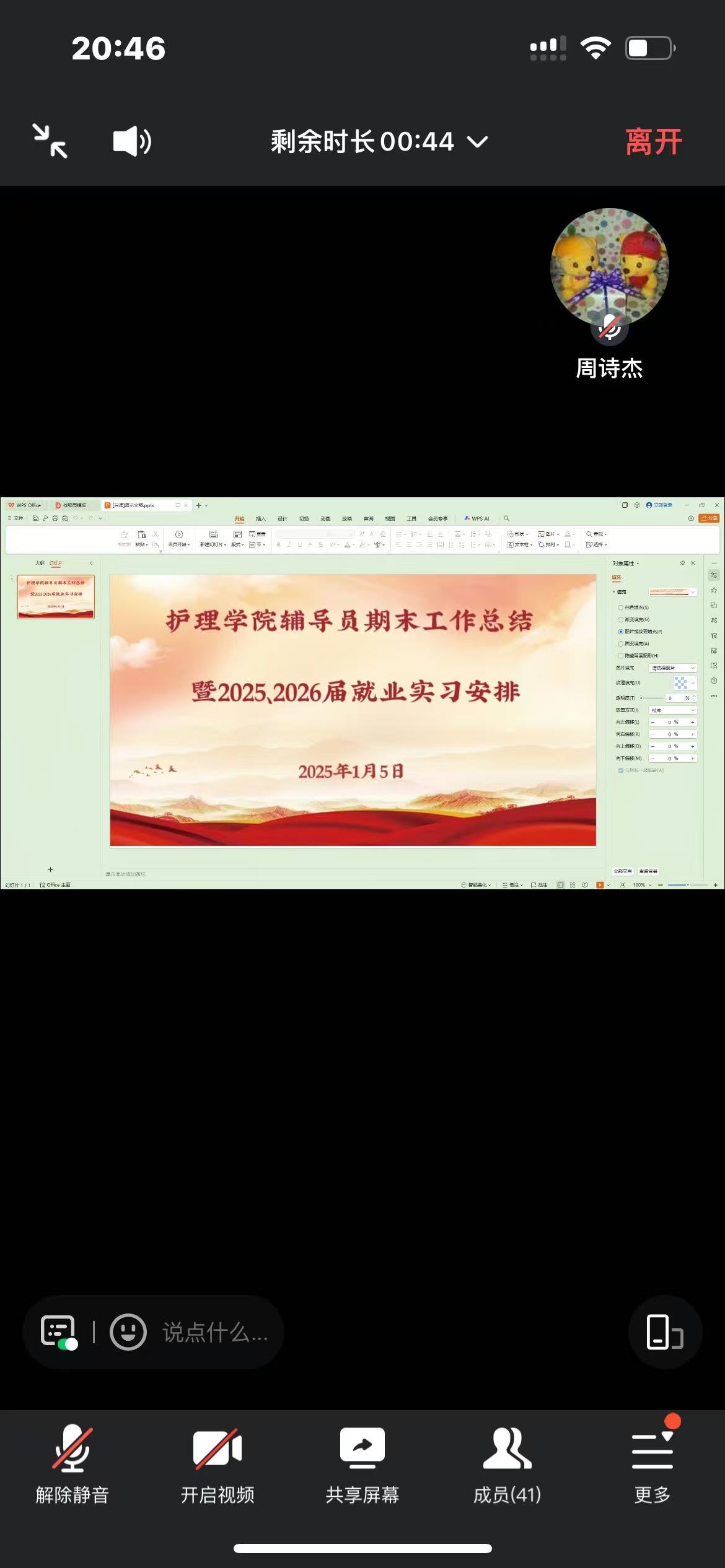 本次期末总结大会暨实习就业工作推进会的召开利于辅导员自身回顾一学期工作,梳理学生管理、思想引领、班级建设等事务成效,也为学生顺利实习就业奠定了坚实基础。