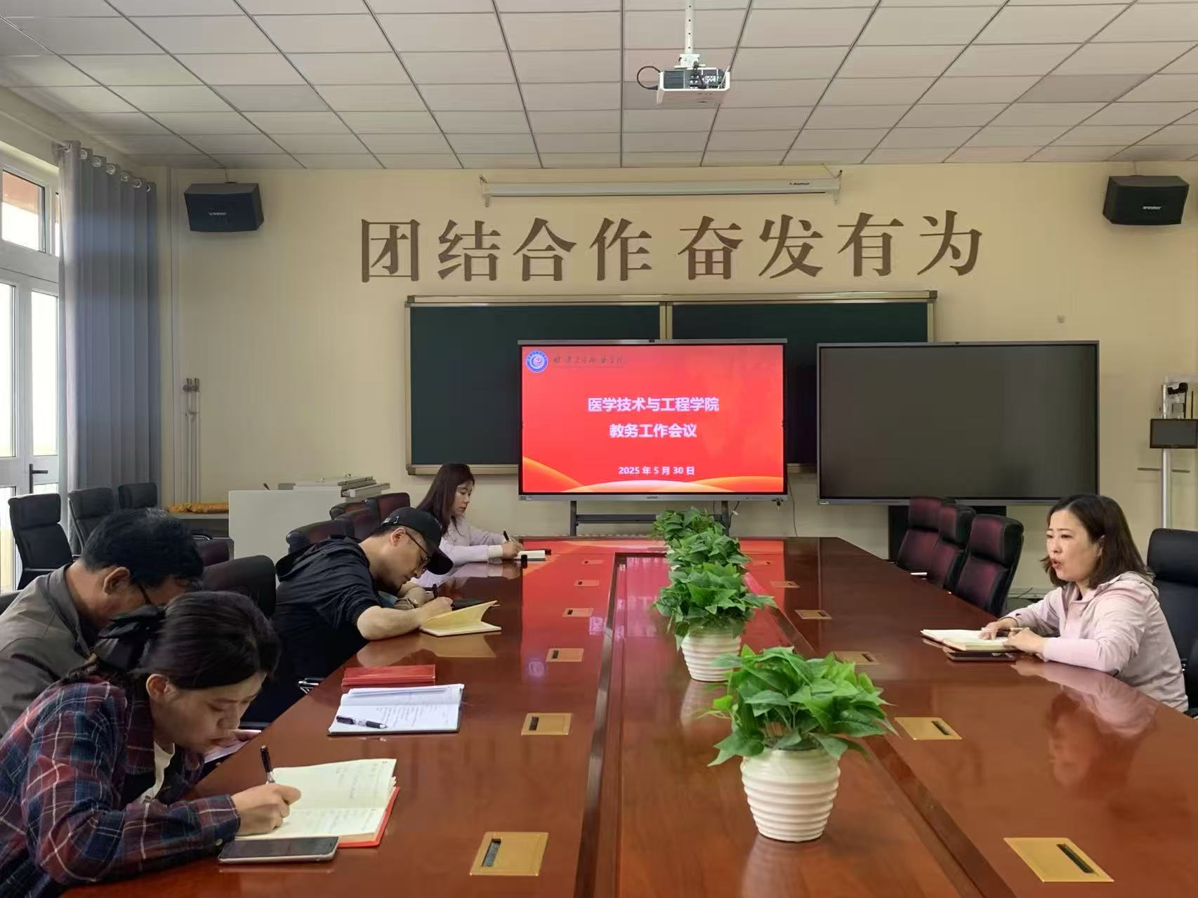 为确保近期各项教务工作有序推进,5月30日上午9:00,医学技术与工程学院在516会议室召开了教务工作会议。会议由张娅妮副院长主持,学院教研室主任及教务科研办公室负责人出席了会议。