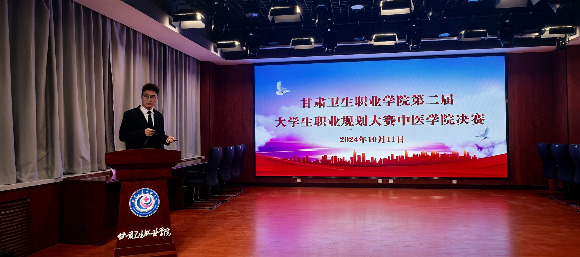 10月11日晚,中医学院在6号教学楼学术报告厅举办了学院第二届大学生职业规划大赛决赛。学院班子成员、团学管理办公室和实习就业办公室相关负责人担任评委,现场150多名学生观看比赛。