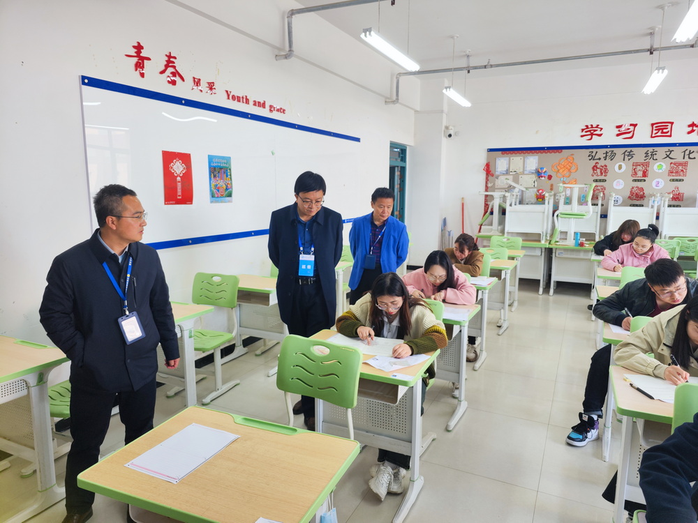 考试期间,甘肃省教育考试院副院长张永一行莅临学校巡视检查。邱文云副校长和教务处相关人员陪同巡视,教务处处长徐明丽详细汇报了考点工作情况。巡查组表示,考点全体工作人员分工明确、各负其责、通力协作,整个考试过程井然有序,体现了高度专业的考务组织能力,今后将与学校进一步加强交流合作,扩大学校承接的社会考试种类。