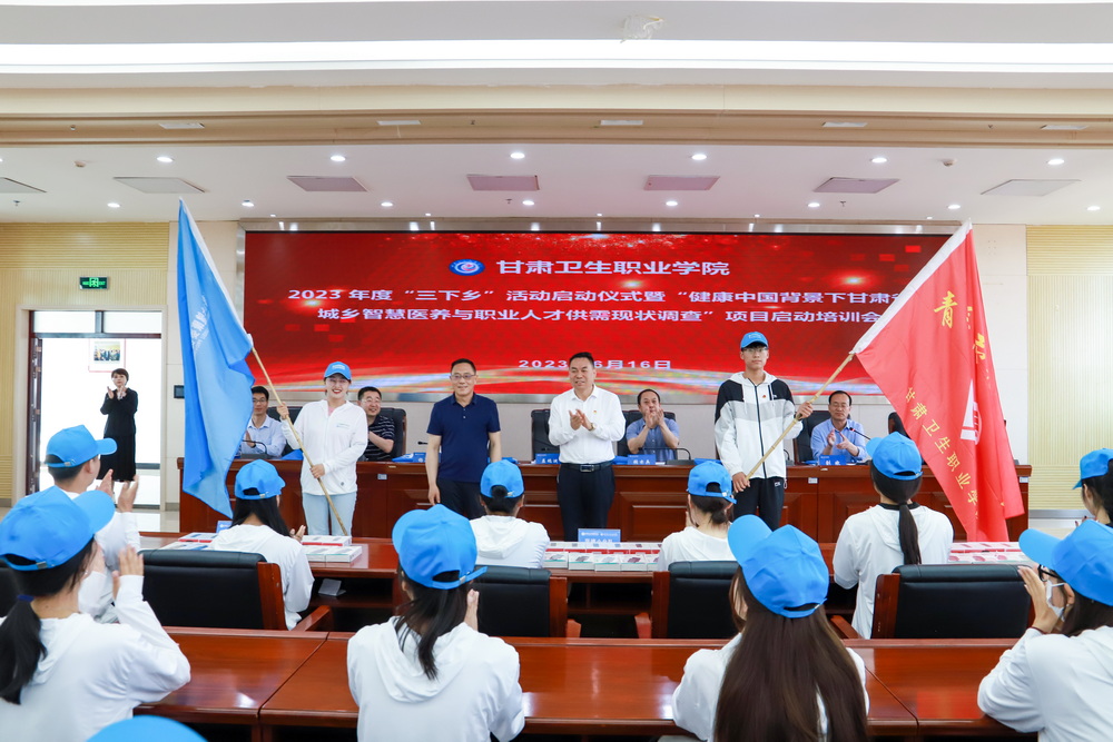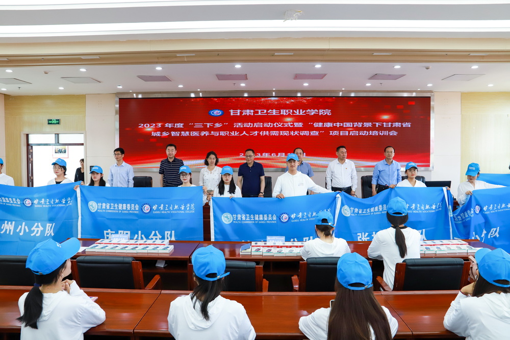 益瑞渊作讲话,指出本次活动是贯彻党的二十大精神,落实省委省政府各项决策部署,以“三抓三促”行动为契机,坚持问题导向,聚焦推动卫生事业高质量发展,结合工作实际,深入基层一线开展调查研究工作的一次具体行动。这次调查是在全党大兴调查研究、掌握实情的大背景下,由省卫健委老龄健康处牵头谋划,与甘肃卫生职业学院暑期“三下乡”活动紧密结合,是大学生了解我省目前基层现状、感受祖国飞速发展成果的过程,也是了解目前基层群众生活需求、生活困难的过程。对此他提出三点要求:一是保证调查安全,二是保质保量完成调查任务,三是抽取的7个市州、85个乡镇、255个村的调查点的卫健部门和配合调查的相关同志要做好配合工作。
