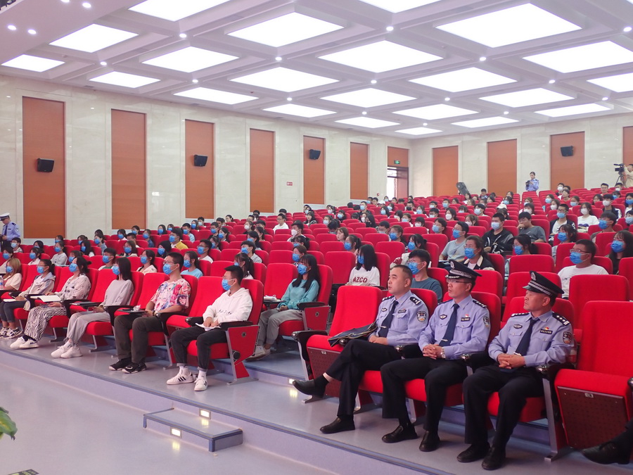 为增强学生的安全防范意识,进一步提高法制安全知识,新学期伊始,特邀兰州新区公安局宣讲团刘迪、王道文、把多杰、周金江四位警官为全校学生安全宣传员开展“走进高校送平安”安全知识讲座,通过预防电信网络诈骗、校园贷、校园暴力、欺凌、国家安全、防毒禁毒及交通安全知识等方面开展专题讲座,为同学们送上校园安全“开学第一课”。