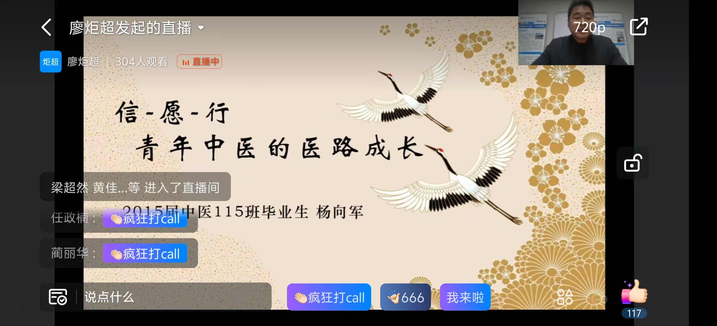 为促进毕业生合理规划职业生涯,树立正确的就业观和人生观,中医学院于3月11日晚在长城宾馆住宿点召开了优秀校友经验分享会。本次分享会邀请杨向军作为主讲人,杨向军是2015届中医学专业毕业生,现在家乡创办中医馆,扎根基层,服务百姓,日接诊量100余人。
