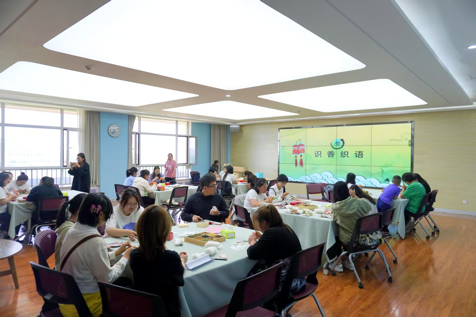 艾叶飘香季,正逢养心时。在端午佳节与“5•25”心理健康月活动相遇之际,学校心理健康教育中心于5月28日在知新楼5楼影视室举办了“五色丝线,情绪解码”教职工荷包制作积极心理体验活动,吸引了40余位教职工参与活动。