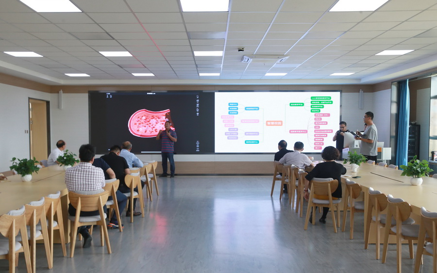吴学敏书记一行现场参观了学校创新数字医学中心和心理健康教育中心等场所,参观过程中任晖校长简要介绍了学校的基本情况。学校相关部门精心安排,全方位展示了学校在智慧校园、信息化建设、心理健康教育等方面的建设和成效。富有特色的信息化模拟教学、先进的数字化设备配置和高规格高标准的心理健康教育建设等赢得了来宾的一致好评。