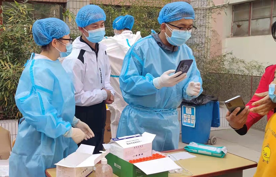 今天上午7时,在学校的五里铺校区,他们以小分队为单位,整装出发,他们满怀医者仁心、肩负神圣使命,毅然逆行,奔赴抗疫一线,踏上服务征程,与各社区人民一道共克时艰、共济危难、守望相助。上午9时许,学校这批抗疫志愿者已到达兰州市城关区的9个街道、82个服务站点,他们就马上开展秩序维护、以及核酸采样的信息录入等服务工作,他们热忱的服务态度、无私的奉献精神、敬业的责任意识得到了站点工作人员和社区群众的好评。