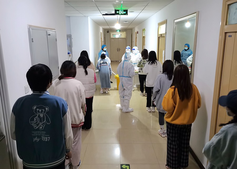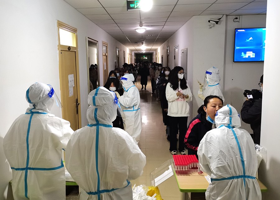 继10月22、26日完成两轮全员核酸检测后,10月28日晚,学校进行了校内第三轮全员核酸检测,落细防控措施,努力在较短时间内管控住本轮疫情传播扩散风险。检测范围覆盖了所有在校教职工、学生,包括安保、物业、食堂、超市等外包服务人员。学校党委高度重视,成立了专门的工作组,周密部署,细化措施,确保万无一失。