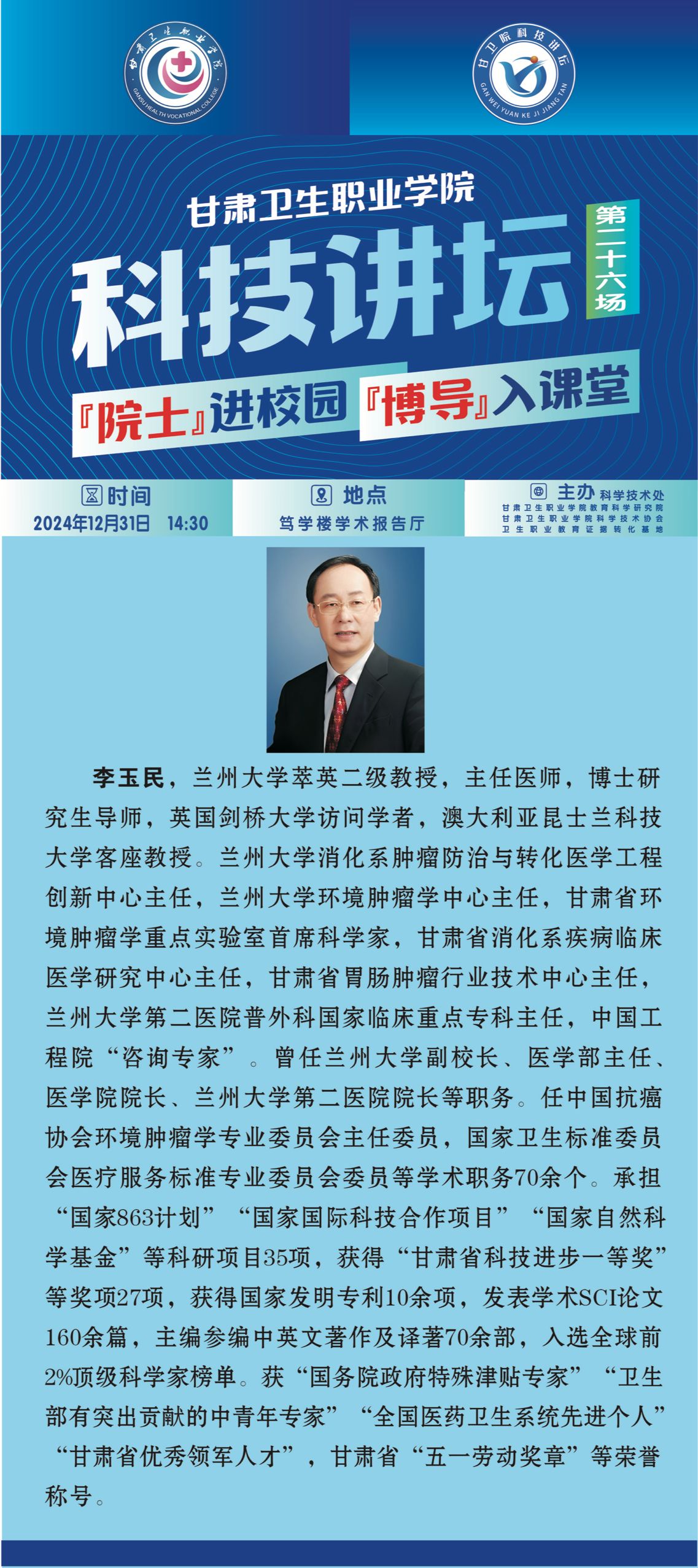 【院士进校园 博导入课堂】学术讲座通知