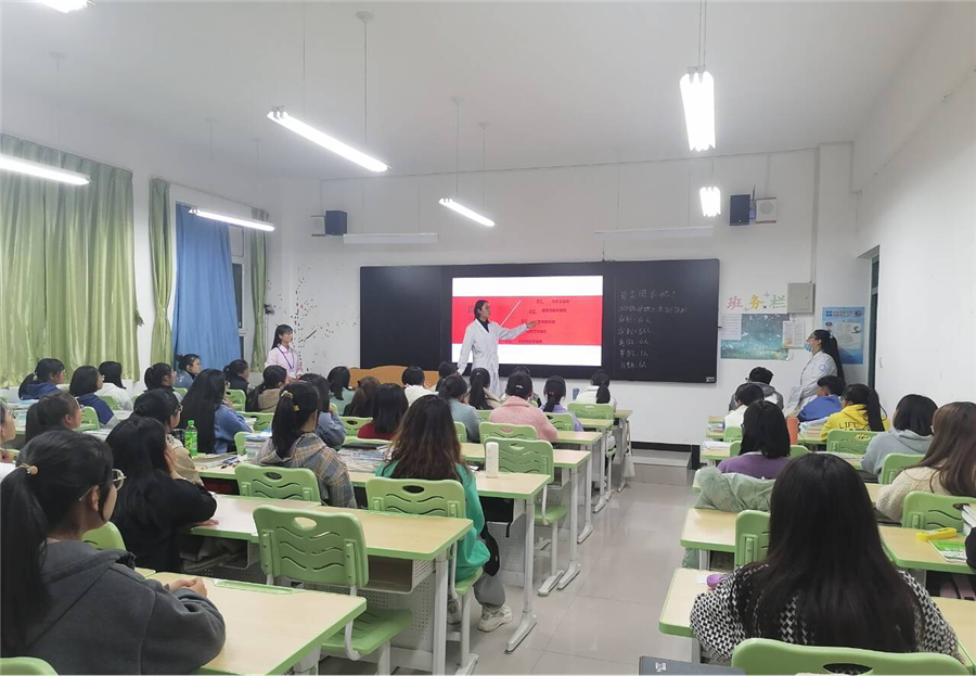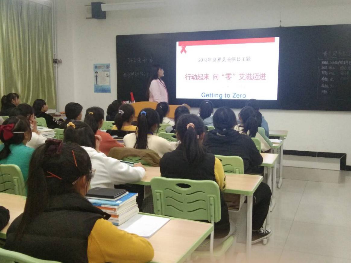 此次班会由附属医院两位主任主持,天使爱心社社员们及附属医院老师对各班进行了艾滋病相关知识宣传及健康教育。主要通过讲解艾滋病相关知识ppt、观看视频等方式,为大家普及什么是艾滋病、艾滋病的目前概况、艾滋病的传播途径和危害,提高同学们预防艾滋病的意识和自我防护能力。