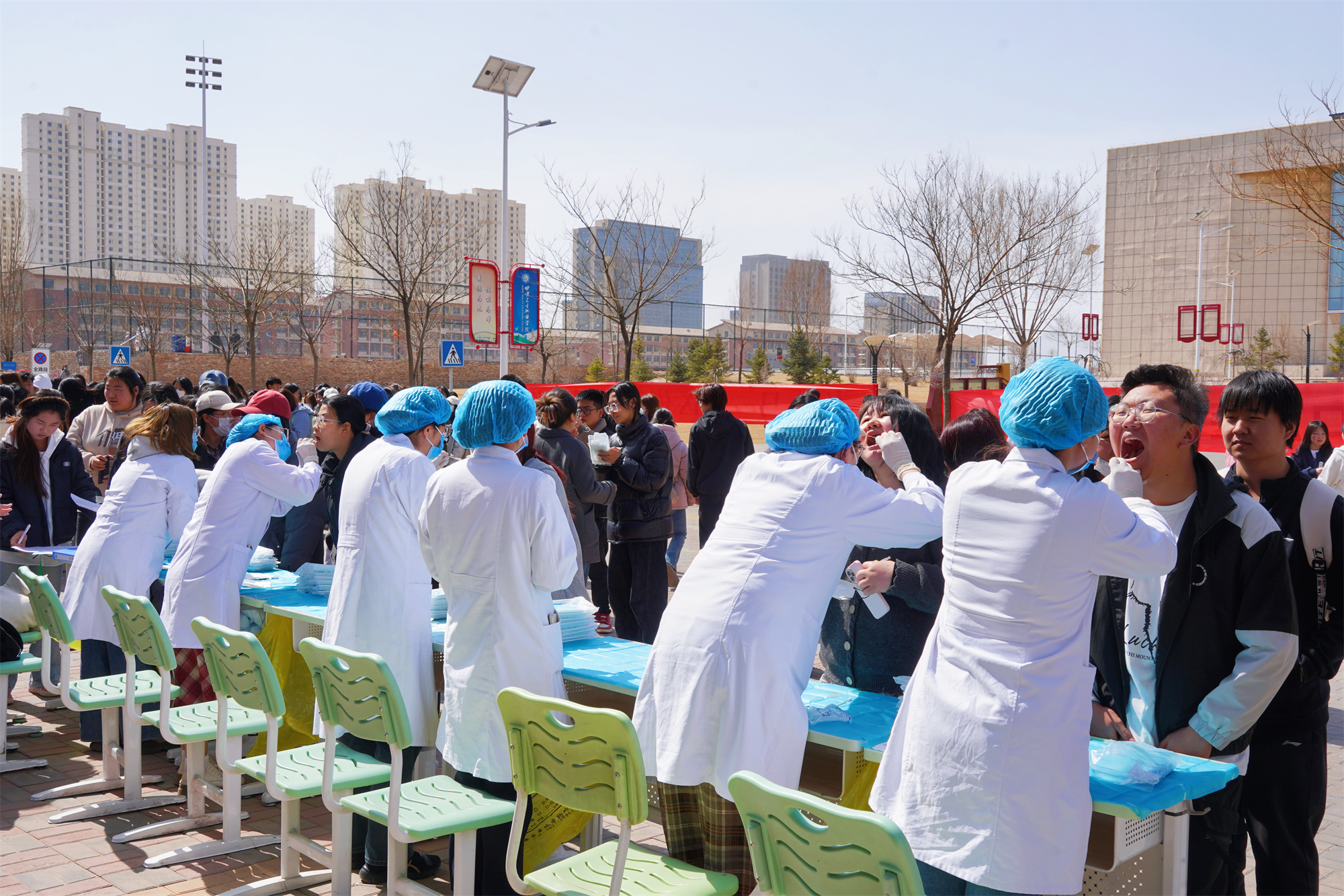 3月20日中午,学院专业教师联合团总支学生社团,在第一食堂西门前广场开展“关爱口腔,微笑同行”公益义诊活动。师生团队为全校师生提供免费口腔检查、菌斑检测及健康咨询,并发放牙线包500余份。活动将专业实践与志愿服务结合,既强化了学生的职业使命感,也让更多师生认识到口腔健康对全身健康的重要意义。