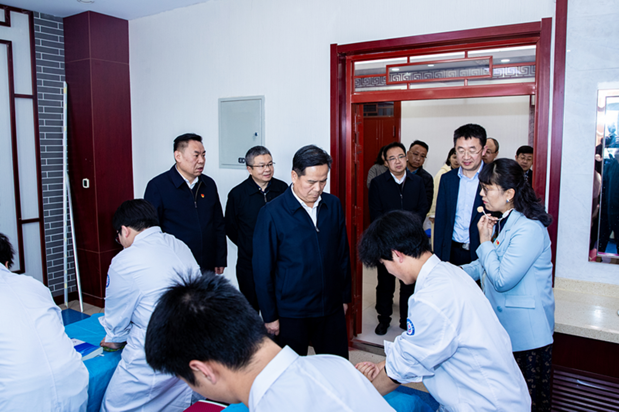 调研组一行参观了校园,实地查看了一站式“学生社区”建设,中医学院、药学院、口腔医学院,中医药博览馆及相关学院实训室,深入了解了学校专业建设、师资队伍、中医药传承、实验实训等方面的工作思路和做法。