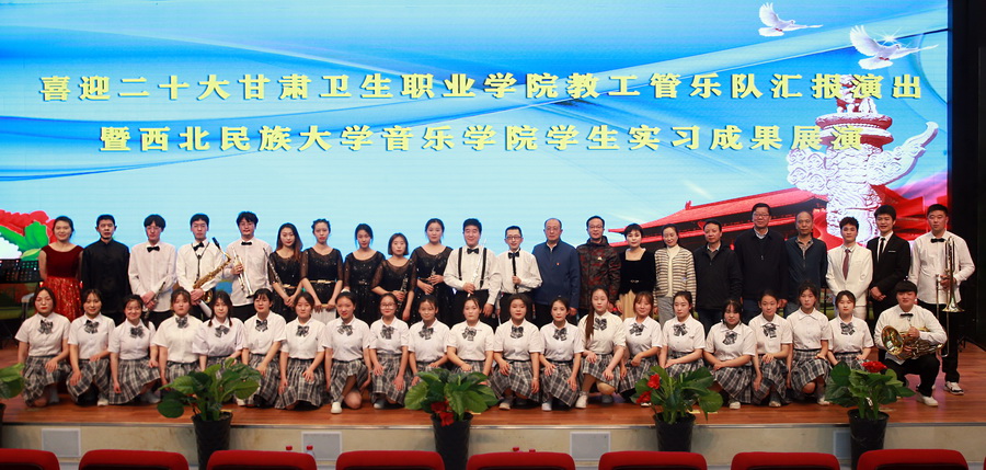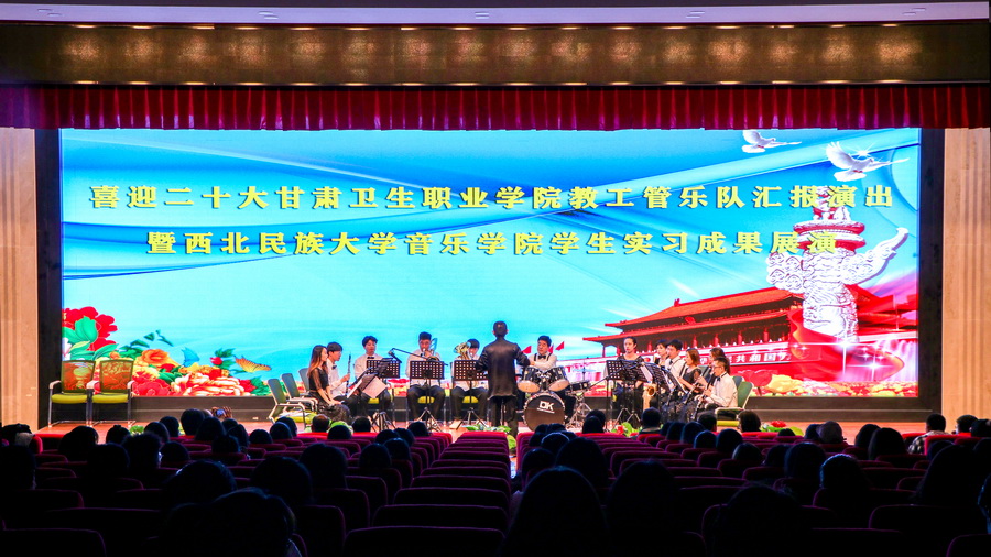 为进一步丰富校园文化生活,提高全校师生艺术素养,集中展示学校教工管乐队的学习训练成绩和西北民族大学音乐学院学生实习成果,4月19日晚,团委组织开展了“喜迎二十大”教工管乐队汇报演出暨西北民族大学学生实习成果展演活动,教工管乐队成员和西北民族大学音乐学院实习生在一号教学楼学术报告厅给师生带来了一场音乐盛宴。