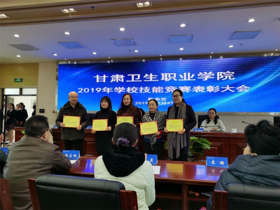 康逢民副校长宣读了《关于表彰奖励2019年学校技能竞赛获奖学生和优秀指导教师的决定》,在2019年各学院举办的学生专业技能竞赛中,共有1330名学生参加竞赛,其中刘勇强等34名教师荣获优秀指导教师奖,胡林芳等164名学生分别荣获各专业技能竞赛一、二、三等奖。在欢快的颁奖曲中,与会领导分别为优秀指导教师和获奖学生代表颁发了奖状。