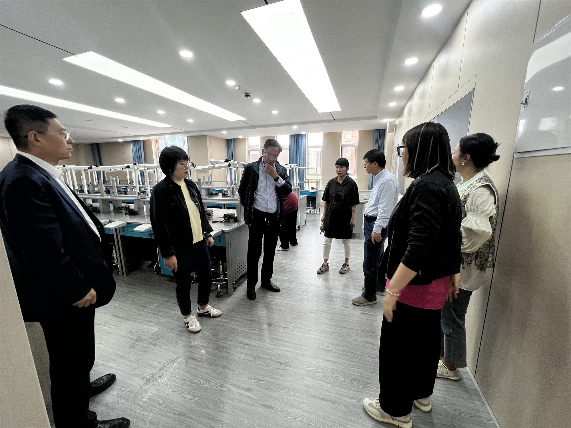 在口腔医学实训中心,刘斌、王林对中心的布局规划、实训设施设备以及实训室管理等方面均给予了高度评价,对学院在提升内涵建设,提升教学质量、强化学生实践能力方面所做出的努力表示高度认可;随后,双方就学校人才培养如何接轨行业发展、师资队伍建设、科研合作以及学生就业等多个方面进行了讨论。