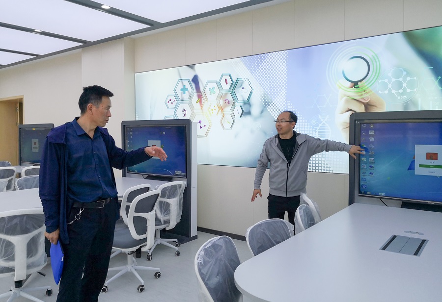 任书记一行主要调研和督导信息化四平台两中心的建设工期及后期使用培训情况。先参观了学校中心机房、创新数字医学中心和教师发展中心,随后在信息中心A209教室召开了调研会,信息中心主任杜学海就四平台两中心的建设及后期使用情况作了详细汇报。1.学校网络平台已于2017年9月建成并投入使用。2.中心云机房已于2018年3月建成并运行。3.学校官网已建成运行。4.校园电视台建设已完成将于9月底交付使用。5.微博微信建设完成并交付党委宣传部投入使用。6.Bb教学平台建设完成已上线一门课程(护理礼仪与美学)。7.考试平台已建成使用并完成2019届临床医学学生毕业考试及兰州新区卫生系统工作人员月考3次共计1100余人次。8.数字校园平台已完成人事、教务、办公、学工等基础信息录入。9.学校云盘已于今年5月建成并投入使。10. 创新数字医学中心和教师发展中心将于9月底交付使用。11.信息中心连续两年组织学校老师参加全省教学能力大赛取得优异成绩,今年冲出省赛取得一名参加国赛名额。12.制定完成《甘肃卫生职业学院在线开放课程建设管理办法(试行)》。