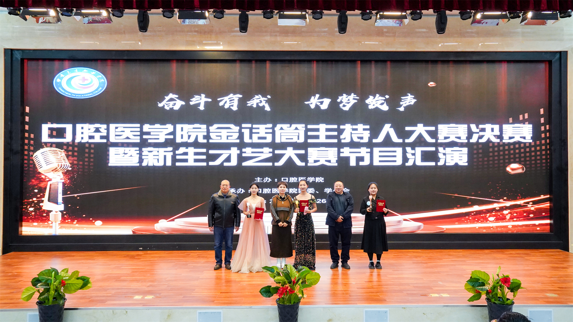 最终,23级口腔医学技术15班芮明卿凭借其出色的表现获得了“金话筒”主持人大赛的冠军。评委们为全部参赛选手颁发了一、二、三等奖及优秀奖的奖杯和证书。本次活动的成功举办,为同学们提供了展现自我、挥洒才华的舞台,也为学院后续的文艺活动提供了可借鉴、推广的经验。