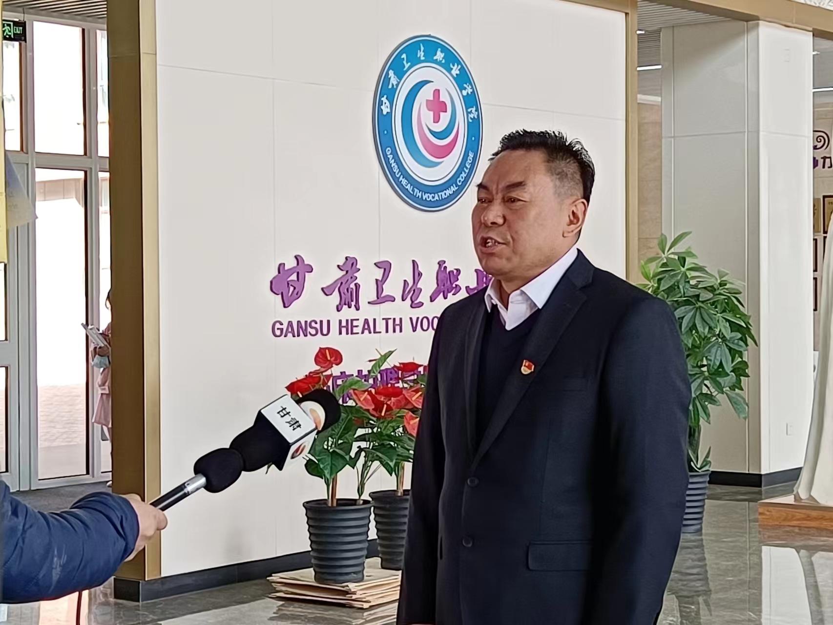 会后,学校党委书记包磊接受了甘肃省电视台记者的采访。采访中,包磊书记分享了对本次学习的感受与思考,介绍了学校开展主题教育的思路方法,并就学校卫生职业教育事业改革与发展阐述了相关构想。