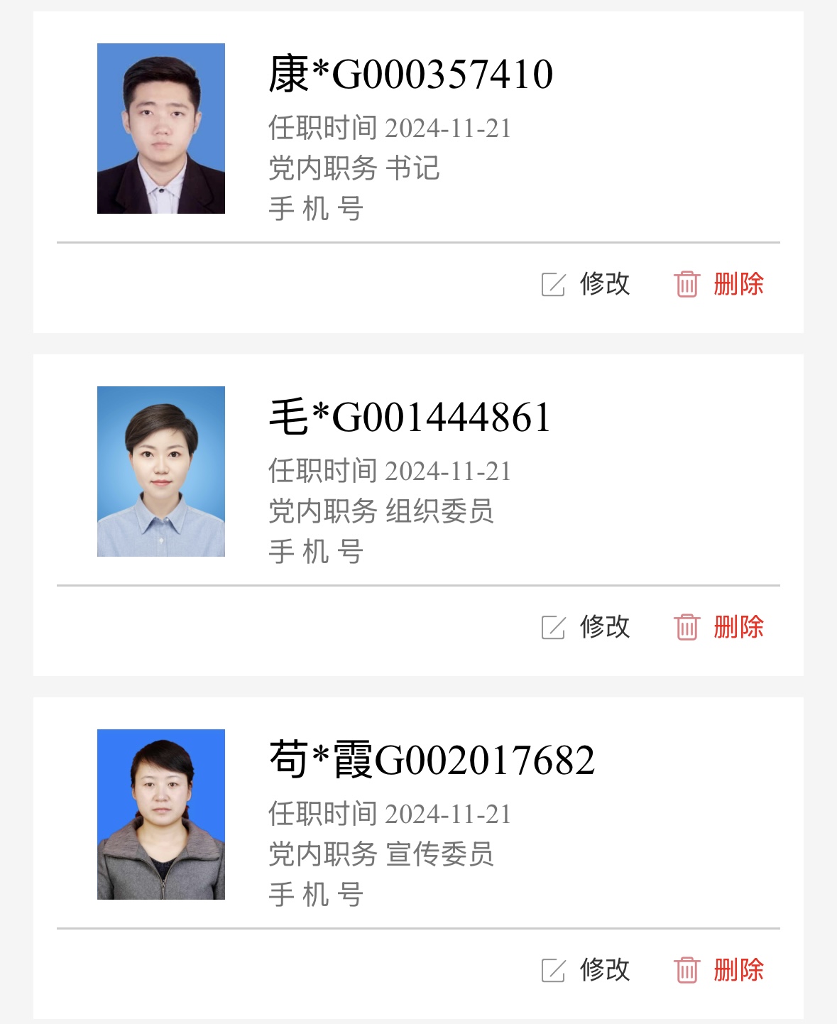 中共甘肃卫生职业学院护理学院学生第一支部委员会于2024年11月21日批建成立,李碧霞同志任支部书记,周诗杰同志任组织委员、纪律检察委员(兼),韩媛媛同志任宣传委员。