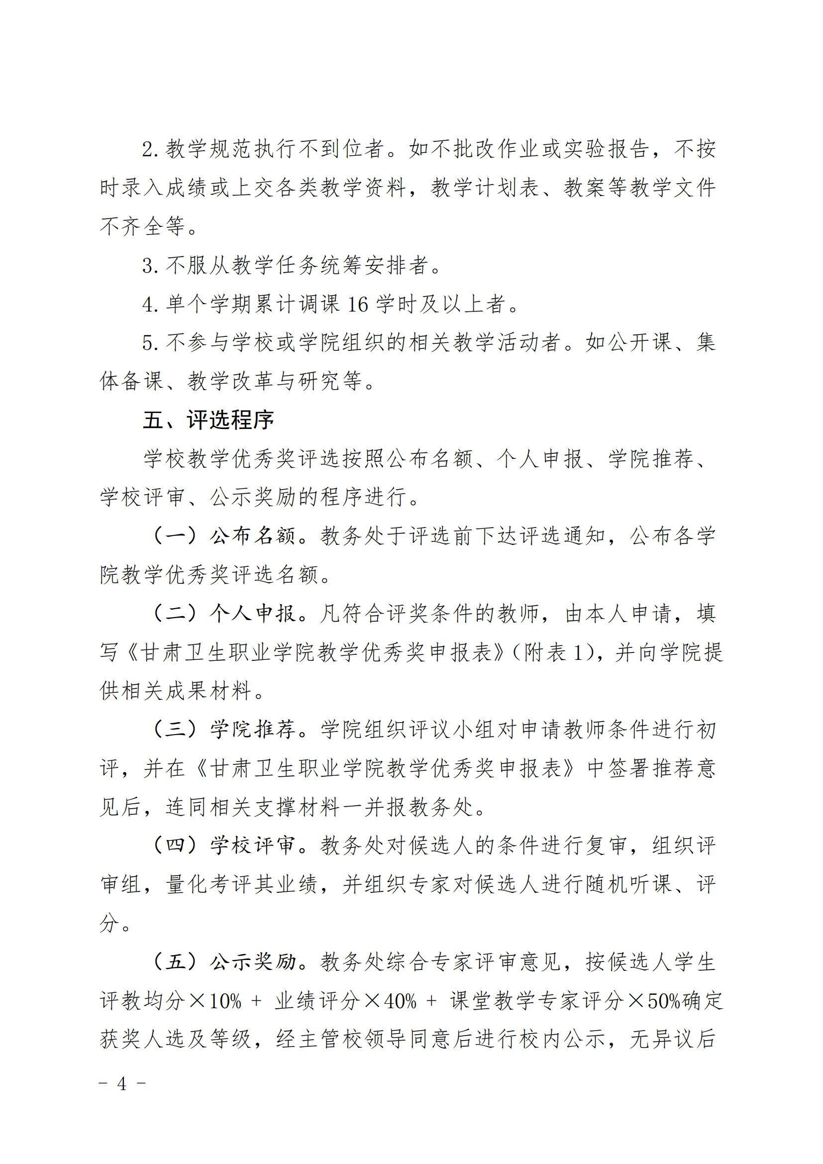 附件:甘肃卫生职业学院教学优秀奖评选办法