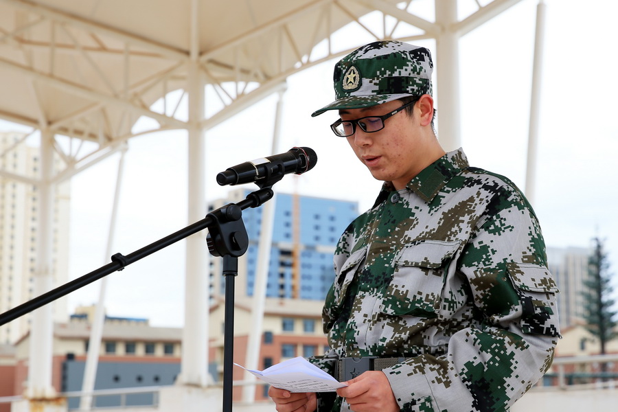 大会在激昂的国歌声中拉开序幕。会上,张绍进处长宣读了《甘肃卫生职业学院2019级学生军训方案》,临床护理学院党总支书记谢振荣宣读了军训管理制度,中医药学院党总支书记杨频宣读了军训评优细则,医学技术学院党总支书记王义安宣读了军训作息时间安排。