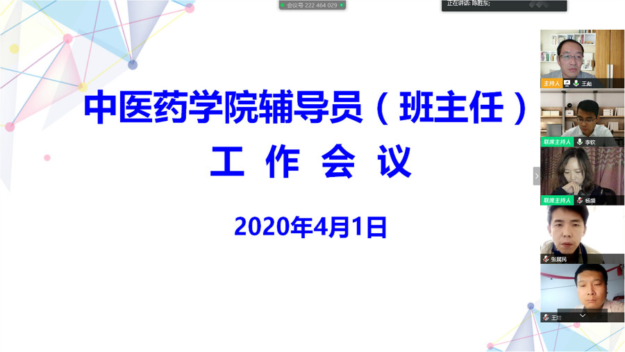 中医药学院疫情期间召开3月份辅导员(班主任)工作例会发布时间:2020-04-02 -