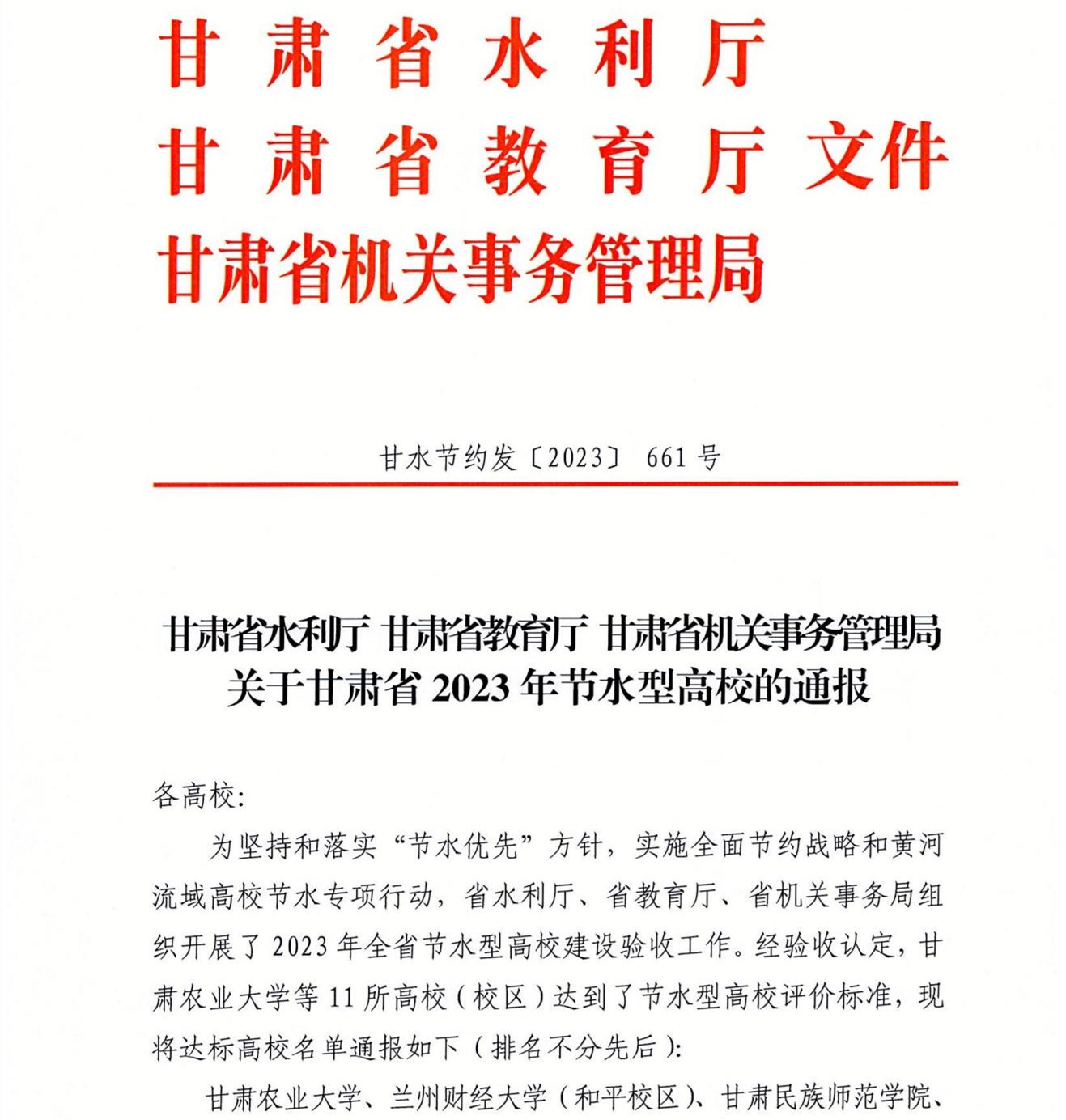 喜报!我校获评全省“节水型高校”称号!发布时间:2023-12-27 -