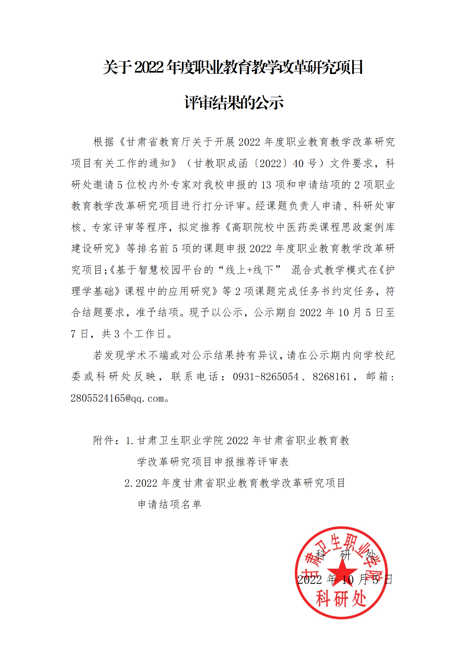 关于2022年度职业教育教学改革研究项目评审结果的公示发布时间:2022-10-05 -