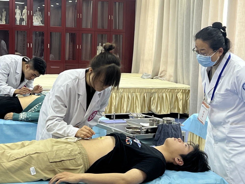 经前期培训、初赛选拔,50名选手进入决赛,本次大赛对接中医执业助理医师资格考试大纲内容,设理论、点穴、艾灸、拔罐和病案分析五个项目。决赛现场,各位裁判员客观严谨,公平公正,各位参赛选手沉着冷静,精神饱满,展示出了他们良好的专业技能和职业素养。最终,2022级中医学三年制29班张靖等5名选手获得大赛一等奖,2022级中医学三年制25班马秀荣等10名选手获得二等奖,2022级中医学三年制26班石佩等15名选手获得三等奖。