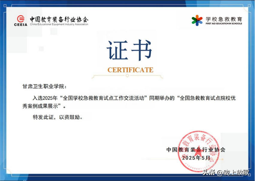 “此次案例入选,是对我校急救教育工作的高度认可,更是一份沉甸甸的责任。”学院相关负责人表示,学校将以此次荣誉为契机,持续深化急救教育改革,加强与全国高校的交流合作,充分发挥优秀案例的示范带动作用,计划每年开展不少于10场校际急救教育研讨活动,让急救知识与技能在校园内外更广泛传播,为推动全国学校急救教育事业高质量发展持续贡献“甘肃力量”。