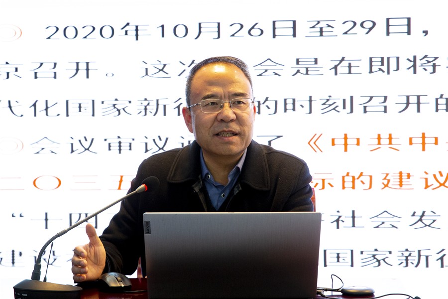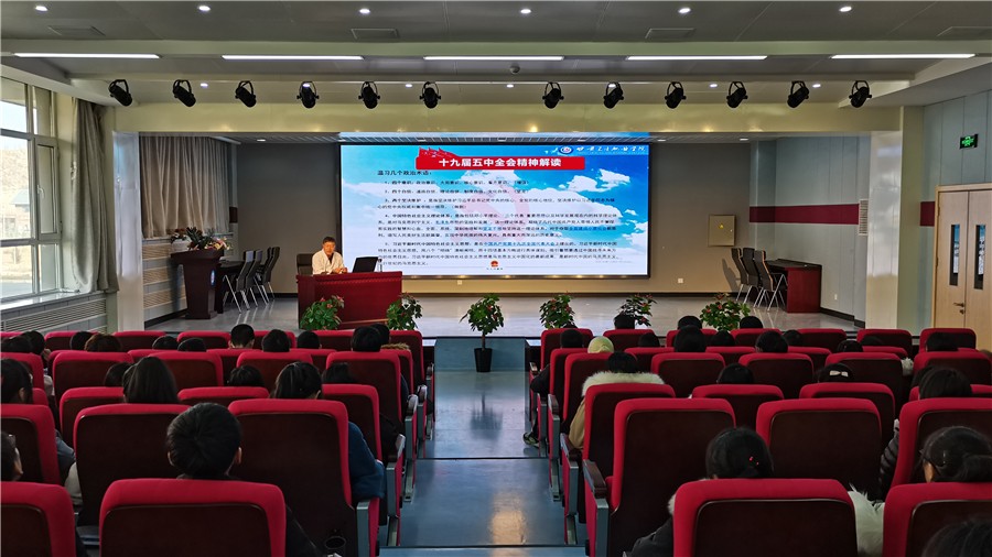 党委副书记、校长任晖回顾了我国全面建成小康社会取得的决定性成就,分析了新发展阶段面临的新形势,阐释了“十四五”规划和2035年远景目标的主要内容,对全会提出的进入新发展阶段、贯彻新发展理念、构建新发展格局、推动高质量发展、坚持党的全面领导等一系列重大部署作了系统解读;她鼓励青年学生要刻苦学习,勇于担当,做民族复兴大任的接班人。