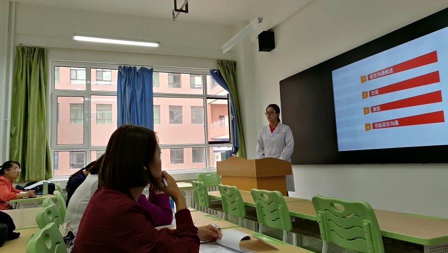 教研活动的主题为新授课教师试讲,郭璐璐老师试讲内容为《人际沟通》之语言沟通概述,孙南竹老师试讲内容为《护理心理学》之感觉,两位老师教态大方、备课充分,赢得了全系教师的一致好评,资深教师就试讲过程中的问题进行细致的点评,并给出了诚恳的建议。卢玉彬表示,护理系教师各具特色,各有所长,希望年轻教师们再接再厉,搞好教学,建设好专业,为学院发展尽自己一份力量。