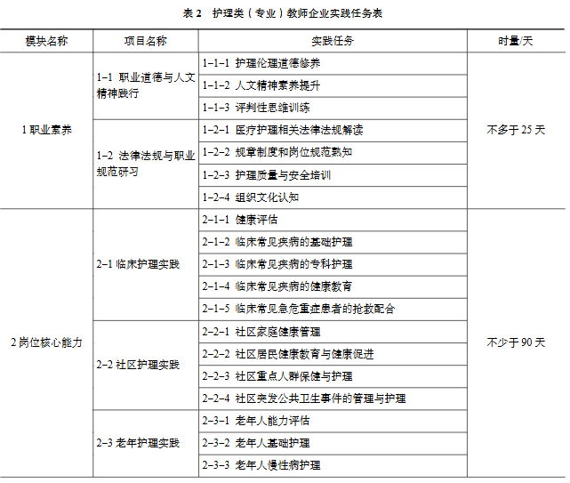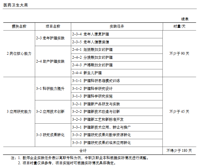 教育、科技、人才是全面建设社会主义现代化国家的基础性、战略性支撑。教育是国之大计、党之大计。职业教育是与普通教育具有同等重要地位的教育类型,是国民教育体系和人力资源开发的重要组成部分,是培养多样化人才、传承技术技能、促进就业创业的重要途径。切实提高职业教育的质量、适应性和吸引力,培养更多大国工匠、能工巧匠、高技能人才,必将为加快建设教育强国、科技强国、人才强国奠定坚实的基础。教师是立教之本、兴教之源,要增强职业教育的适应性和吸引力关键在于教师。职业院校的专业课教师(含实习指导教师)应当具有一定年限的相应工作经历或者实践经验,达到相应的技术技能水平。教师企业实践是培养职业教育“双师型”教师的有效途径和必由之路。为规范和指导企业(包括产教融合型企业等)根据护理类(专业)具体需求开发与实施教师企业实践项目,提升职业院校教师的职业素养、岗位核心能力和应用研究能力,特制订本指南。