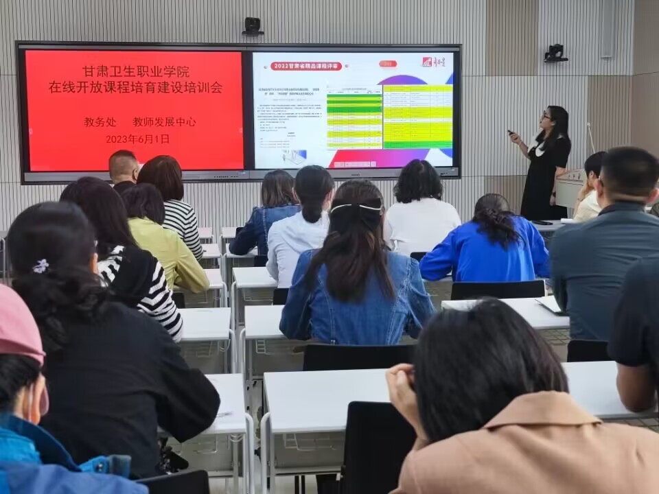 会上,超星集团课程编导金晓艳作了题为《线上线下混合式课程建设服务》的主题培训。首先,她从精品课程建设历程、国家精品在线开放课程的评审和认定、2022年甘肃省精品课程评议性指标等方面解读了国家在线开放课程建设和评审政策。其次,她按课程建设前期资料准备、中期课程拍摄、后期资料上传等流程,对课程教学团队的构建、课程内容的设计、课程特色的打造、课程资源的组织、课程视频的制作流程、录制要求以及注意事项、课程平台应用运行等事项进行了详实的培训指导。接着,参会人员就如何建好在线开放课程进行了热烈的讨论和交流,金老师针对各位教师在线开放课程建设中遇到的困难,进行了答疑解惑。最后,教务处处长徐明丽对金老师生动精彩的培训表示感谢,要求参会教师对照培训内容查漏补缺,提前做好准备,尽快启动在线开放课程视频录制工作。