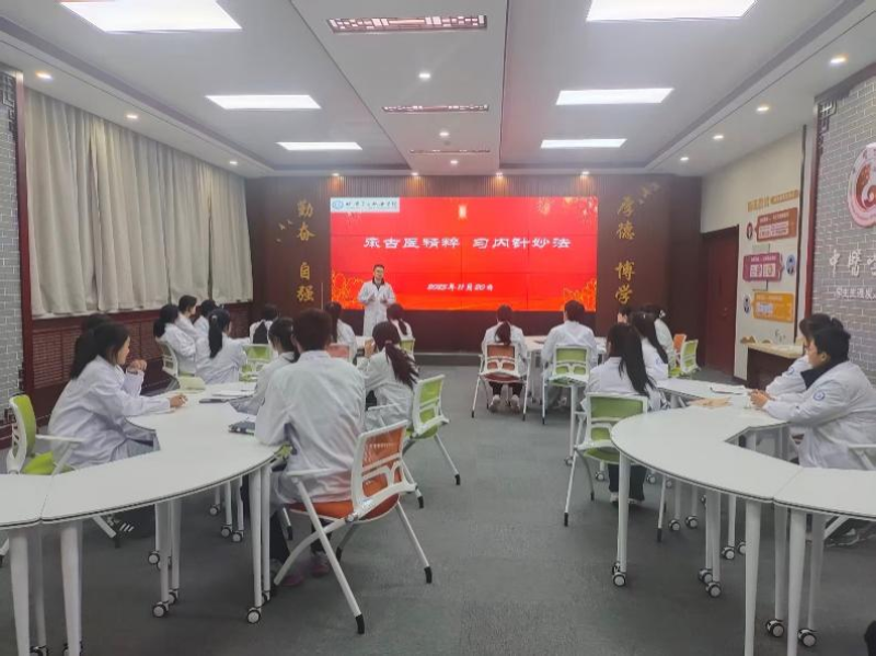 黄帝内针源自中医经典著作《黄帝内经》,是传统中医智慧的结晶,主讲教师深入解读其操作简便、安全性高、应用广泛的特点,聚焦针灸实操、养生康复核心技能,设置了案例分析与实操演示环节,融合理论授课与临床实践,让师生近距离感受针灸魅力。