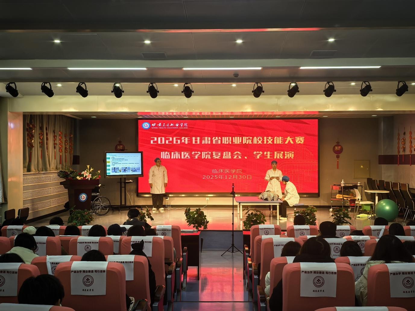 为深化以赛促教、以赛促学、以赛促练长效机制,系统巩固技能大赛成果,精准查找教学与实践中的薄弱环节,12月30日上午,临床医学院召开2026年甘肃省技能大赛专项复盘总结会。学院全体指导教师、参赛选手及学院教师、无课班级学生参加会议。