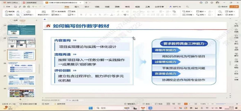 与会教师就课程选题、版权处理、出版社合作等实际问题展开讨论,明确优先开发本学院专业核心技能课程和地区特色课程。下一步,教师可通过数字教材APP进行调研,各教研室组织课程团队内部研讨形成初步建设方案,并与平台方进一步对接建设细节。此次研讨会明确了建设方向与路径,为学院后续数字教材开发工作奠定了坚实基础。
