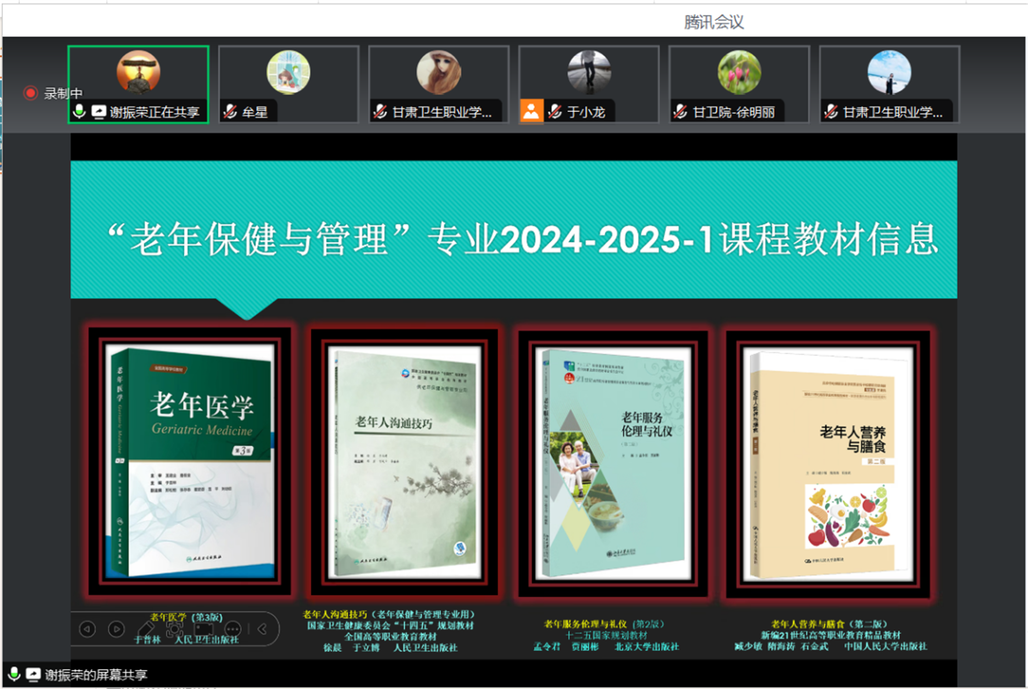 杨频对此次教材选用工作给与了充分肯定。她结合意识形态、教材建设、教材选用等方面提出了建议和意见,指出本学期新开专业老年保健与管理专业的选用教材尤其要严把质量关,要结合与开设课程的匹配度,对教材内容的准确性、适用性进行细致评价。
