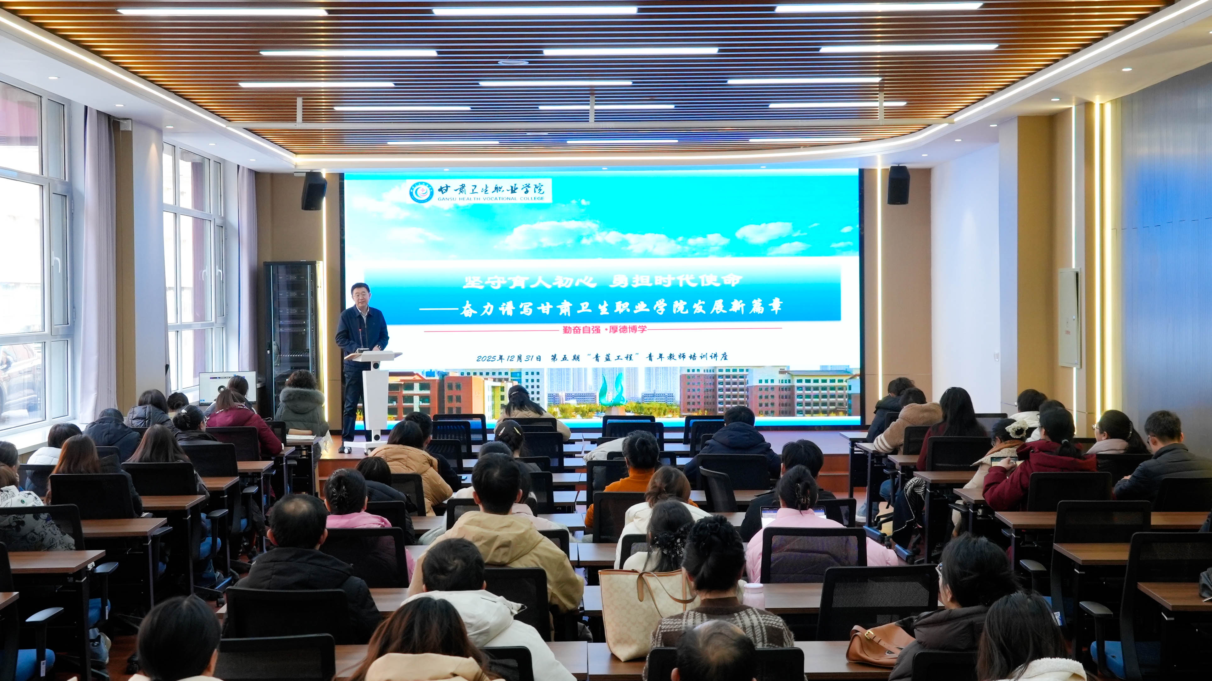 为深入落实立德树人根本任务,加强教师队伍建设,12月31日下午,教务科、教师发展中心在知新楼报告厅举办“青蓝工程”第五期专题培训暨导师聘任仪式。活动聚焦“融入卫院凝心”主题,特邀院长王建成作专题报告,并颁发第五期导师聘书。“青蓝工程”全体学员、导师及众多青年教师共同参加。