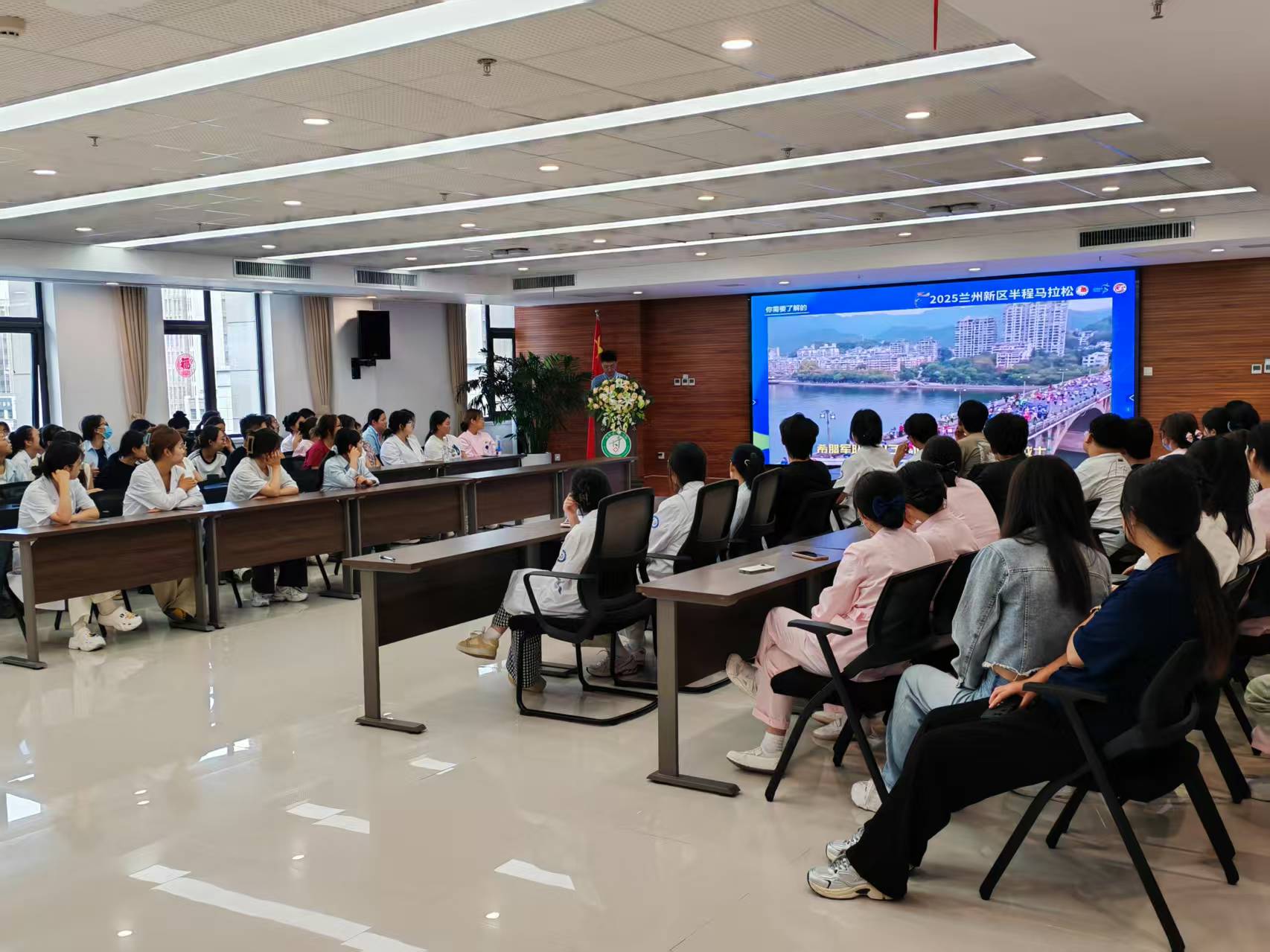 8月24日8时,随着一声枪响,“2025兰州新区半程马拉松赛”在美丽的栖霞湖畔鸣枪开跑。校团委为配合新区党群政法和社会工作部完成志愿服务工作,在学校招生就业实习与校企合作处的协调下,组织在兰州新区第一人民医院和甘肃省人民医院新区分院实习的我校144名实习生为赛事提供了专业的医疗服务与保障。